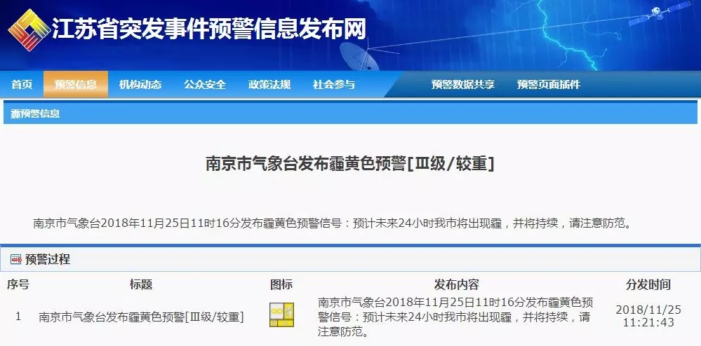 南京市氣象臺(tái)發(fā)布了霾黃色預(yù)警信號(hào),