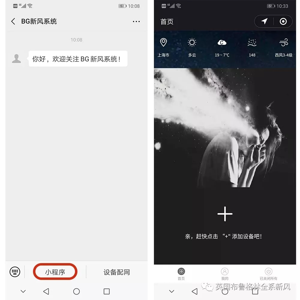 1、關注“BG新風系統”服務號