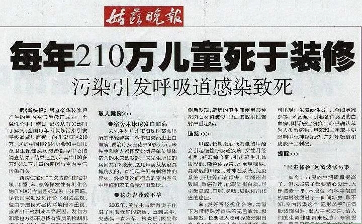 根據權威報告數據顯示,70%以上的中國家庭裝修存在污染現象,高達92.3%的家庭對裝修污染缺乏正確認識,CCTV13新聞頻道報道:全國新裝住宅空氣質量抽檢結果顯示我國新裝住宅的甲醛平均超標率為70%至80%!