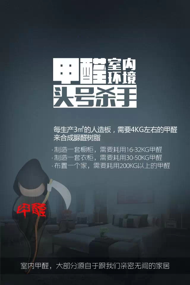 由于受技術限制以及缺乏必要的監督,雖然甲醛有害但仍廣泛運用于家庭裝修和家具生產中,長達3-15年的釋放期,不斷對人體造成危害,特別是對孕婦和孩子的健康威脅嚴重。長期生存在甲醛環境中,我們的一呼一吸都可能在葬送自己的健康!